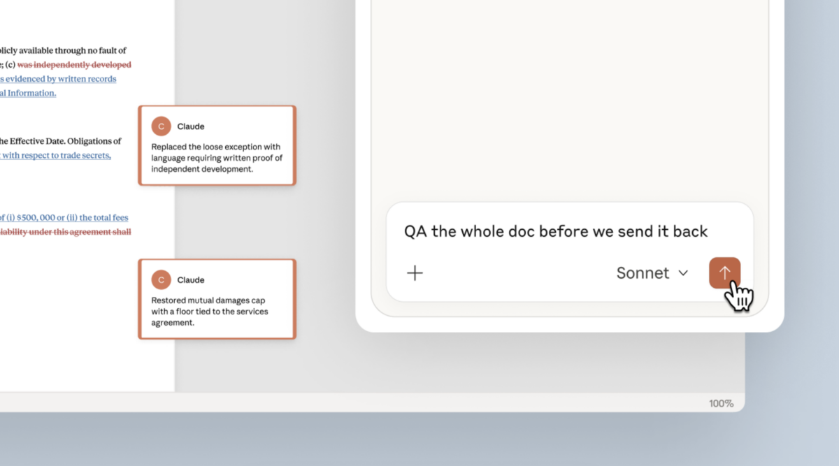 Anthropic, kullanıcıların belgeler içinde doğrudan Claude'un düzenleme özelliklerine erişim sağlamasına olanak tanıyan Microsoft Word entegrasyonu olan Claude'u tanıttı. Düzenlemeler, izlenen değişiklikler olarak gösterilir, yorumlar ise başlık içinde yönetilir ve güncellemeler ilgili olduğu belirli bölümlere uygulanır.
