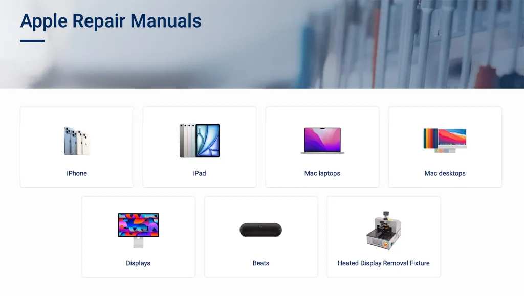 Ayrıca, Apple, birkaç ürün için resmi onarım kılavuzları da sunmakta olup, her bir servis edilebilir parça veya bileşenin değiştirilmesi ile ilgili ayrıntılı, adım adım talimatlar içermektedir.