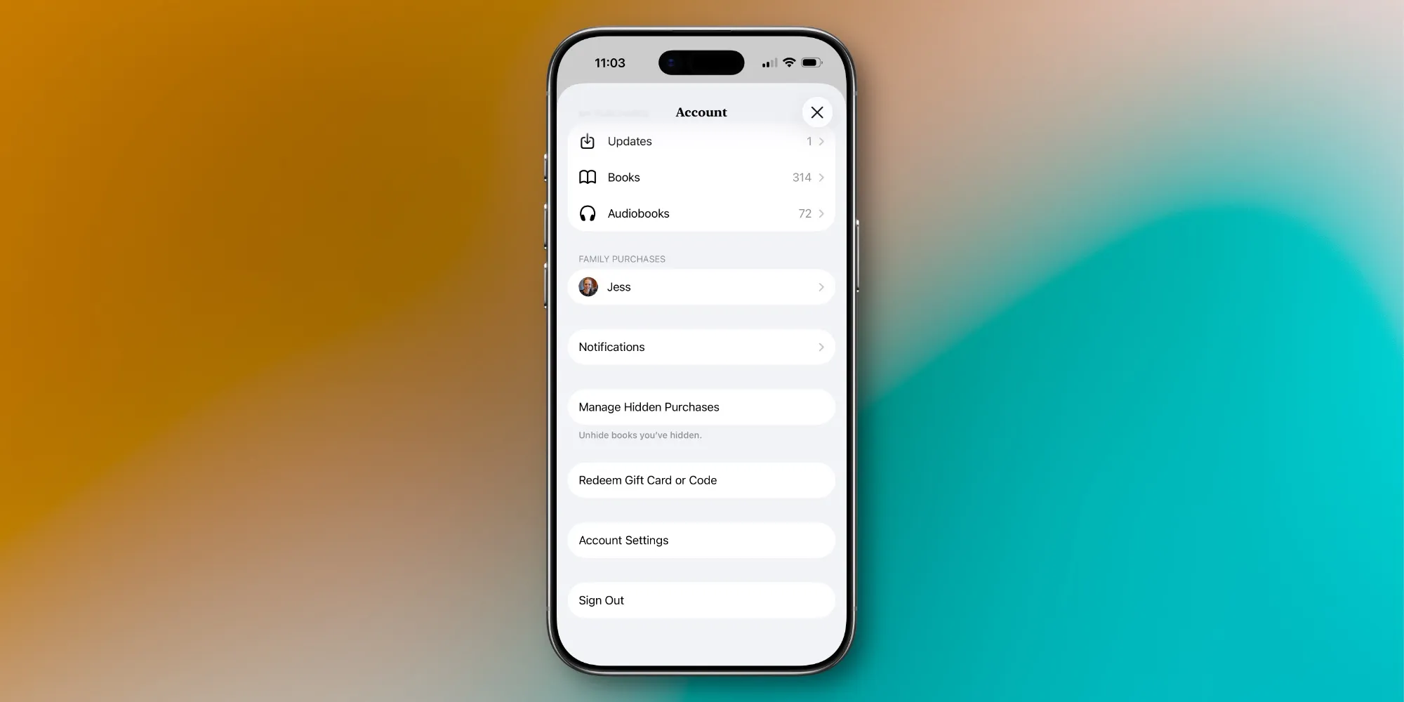 Apple Books uygulamasında, Apple henüz yeni Apple Hesap tasarımını benimsemedi. Umarım bu, gelecek bir güncellemede değişir.