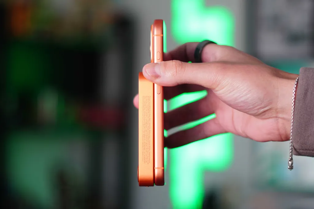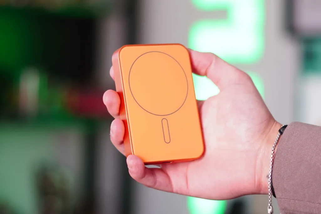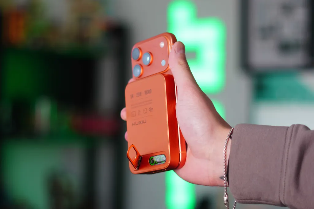 The first thing that caught my attention before using the battery was the color. There are black and Cosmic Orange options available. I chose the orange one because I wanted it to match my iPhone, and it looks really great. Kuxiu has perfectly matched the orange color on the iPhone with the battery pack. They first did this with the X40 Turbo chargers and have carried it over to this S4 MagSafe battery pack.