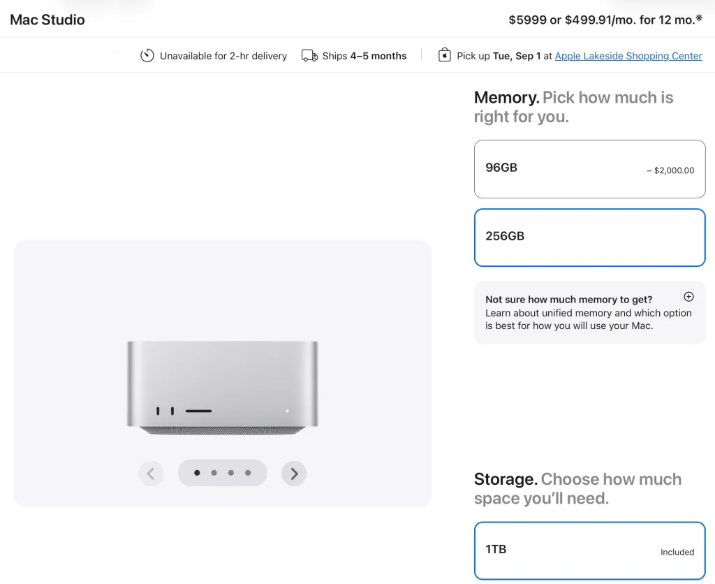 Bugün yalnızca kalan RAM yükseltmesi ile bir M3 Ultra Mac Studio sipariş ederseniz, Apple bunun dört ila beş ay içinde ulaşacağını söylüyor.