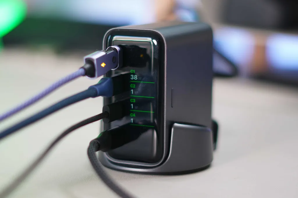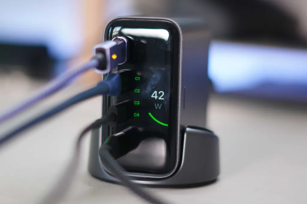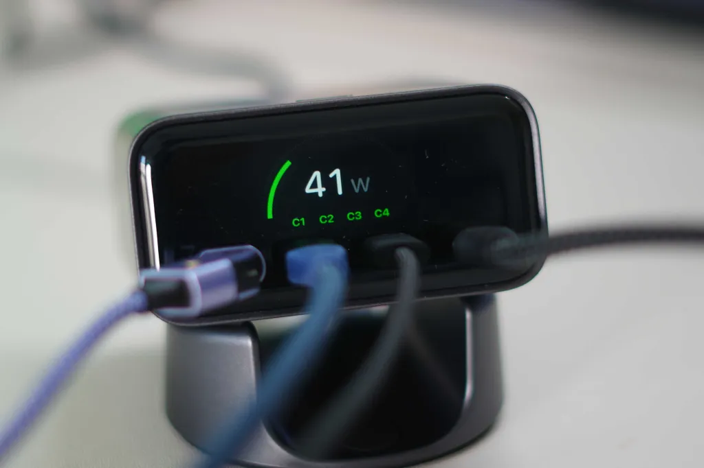 Bu listede dikkat çeken birkaç özellik var, örneğin AVS (Ayarlanabilir Voltaj Kaynağı) desteği, bu da yeni Apple cihazları için optimal hızlı şarj sağlar. Diğer bir dikkat çekici özellik ise, elbette, ekran. Gerçek zamanlı olarak çok fazla bilgi veriyor, 140W çıkış sağlarken ısı yönetimi gibi önemli bilgileri içeriyor. Ayrıca, şarj cihazının masanızda fiziksel olarak nasıl kurulduğuna bağlı olarak ekran bilgilerini döndürmenize de olanak tanıyor. Peki, günlük kullanımda nasıl bir performans sergiliyor?